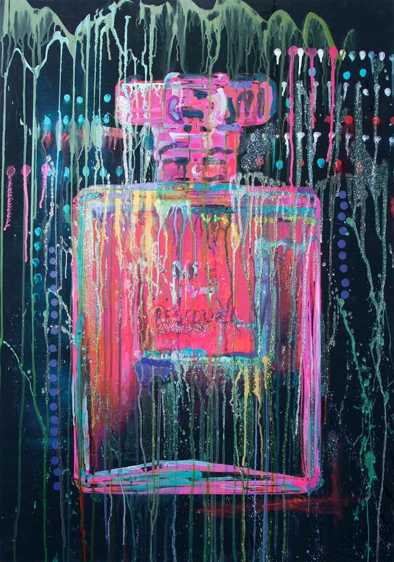 Inspired by one of the most recognisable perfume bottles in the world, this piece reimagines a timeless classic through a contemporary lens. Using spray paint and acrylic, I brought bold colour, texture, and attitude to the familiar form — giving it a fresh, modern energy while still honouring its iconic status. It’s a playful nod to luxury, nostalgia, and reinvention.