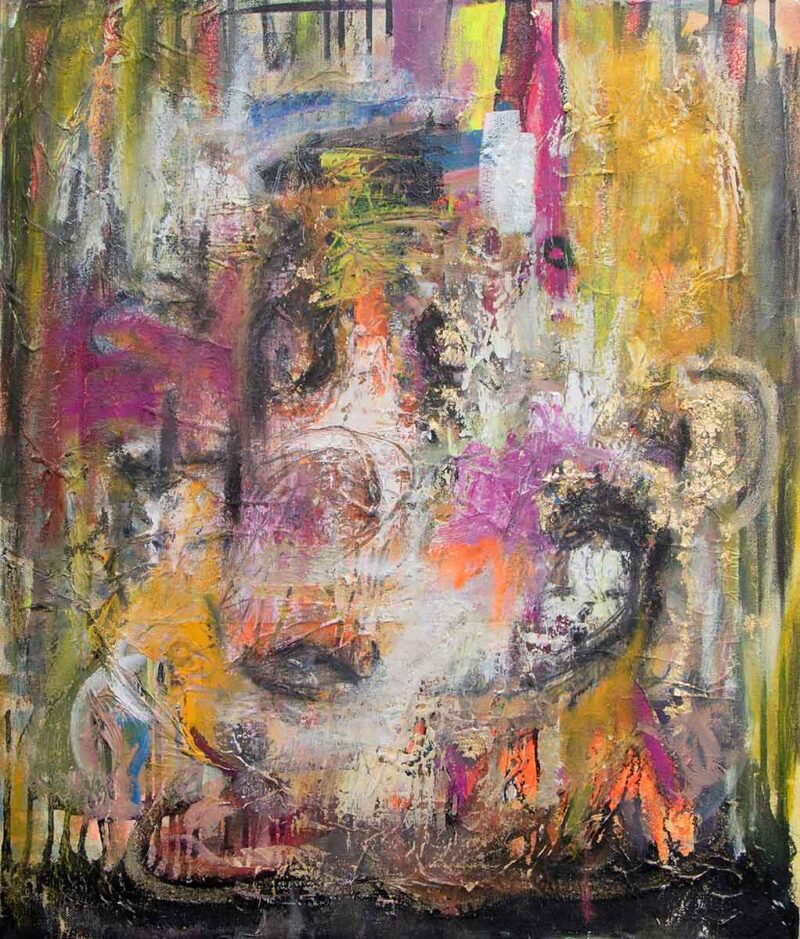 Mixed media on canvas, Oil, gold leaf, acrylic, Ink.